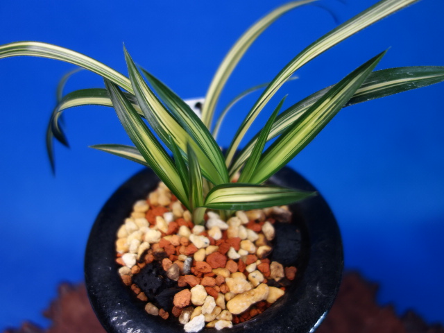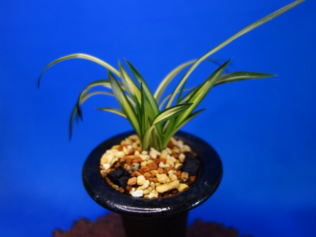 韓国春蘭「太平」 厚葉濃緑紺冠中押し縞